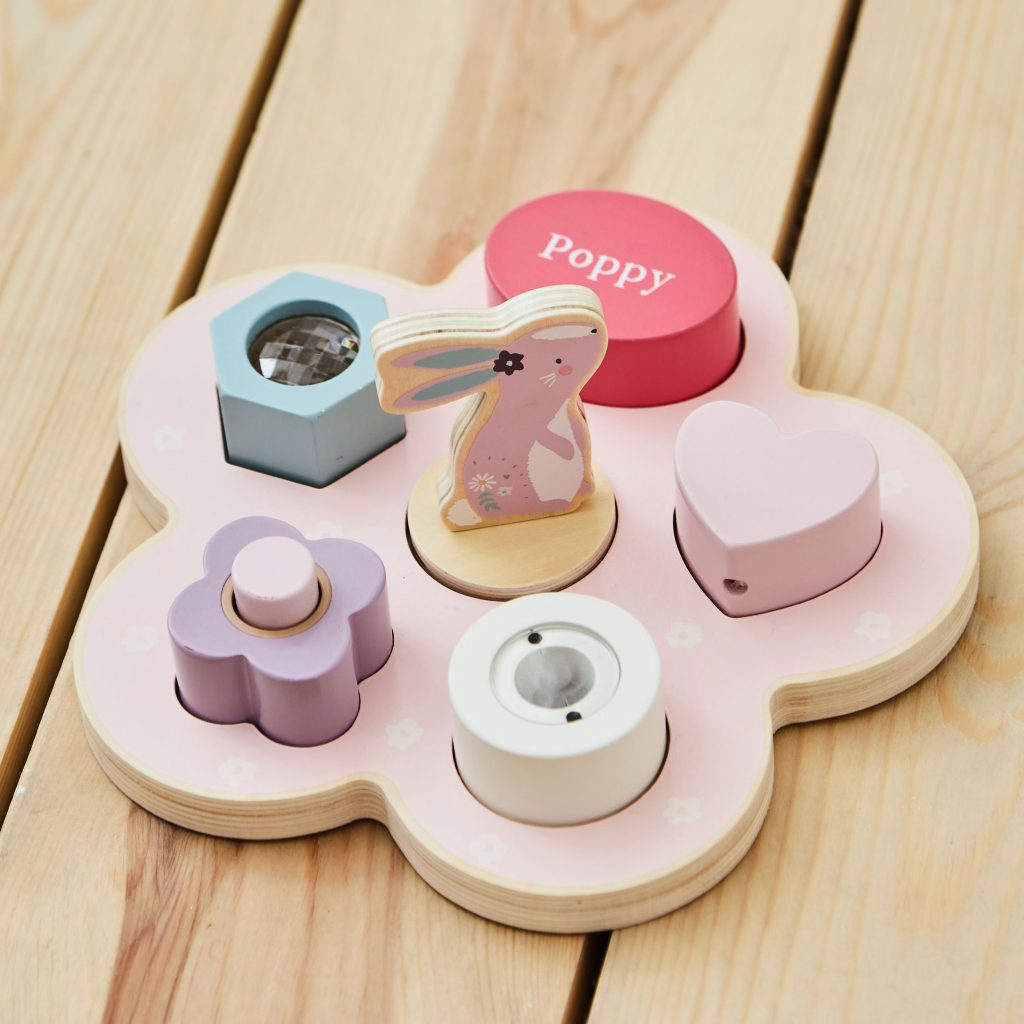 We were equally impressed by the wooden sensory puzzle – a tactile, interactive toy that encourages fine motor skills and exploration. Featuring different colours, and shapes, it’s a great option for toddlers who are beginning to engage with the world around them. The quality of the wood and the smooth finishes make it feel safe and durable, and the personalisation again adds that lovely extra detail – great for gifting or nursery play.
