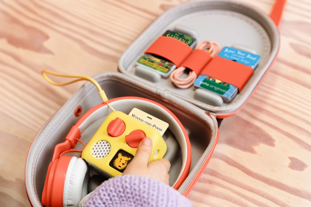 Stories, songs, podcasts and calming sounds play through a built-in speaker or headphones, while a small pixel display shows simple icons related to the content. There’s no visual stimulation competing for attention, which is precisely the point. Children are encouraged to listen, imagine and engage on their own terms.